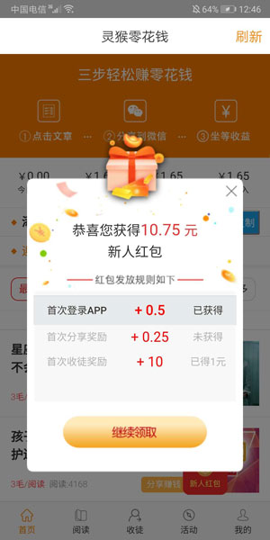 安卓版下载 大小:1.75 MB 下载:3256次 灵猴 支 持:安卓 分 类:手机游戏 大 小:1.75 MB 版 本:3.4.6 评 分: 开发者:随手家 下载量:3256次 发 布:2020-03-14 10:05 手机扫码免费下载 #灵猴截图 #灵猴简介 灵猴app,随手旗下全新平台8月1日10点上线! 阅读单价0.3元,涨分超快! 注册送0.5元,2元提现,秒到账!文章、广告正规,适合所有人转发!收徒活动同步上线, 徒弟首提师傅可得4-8元奖励, 收徒奖励最高达16元,师父可得20%+10%二级转发分成! 联系我们 客服微信:Bengshakalaka199